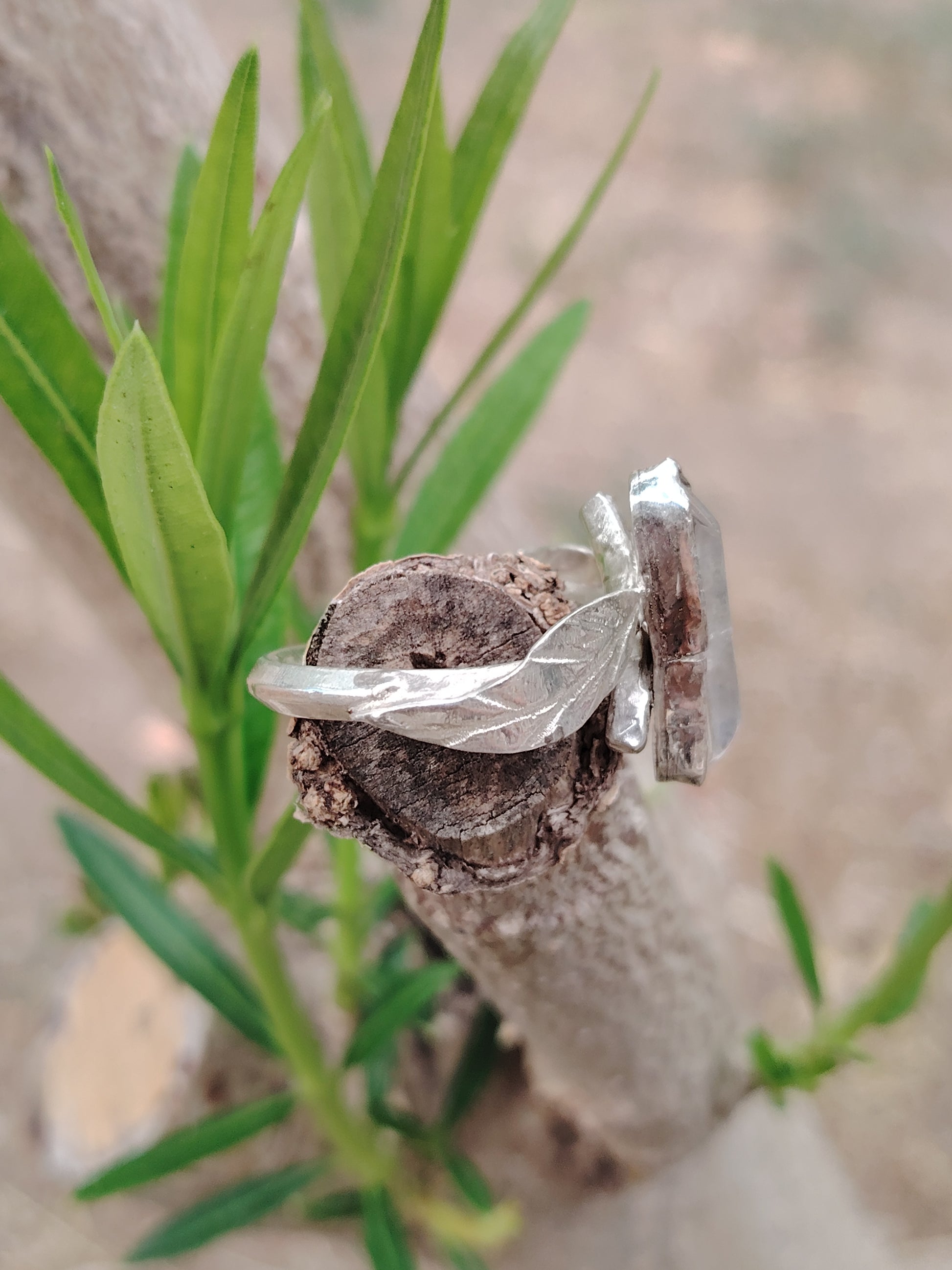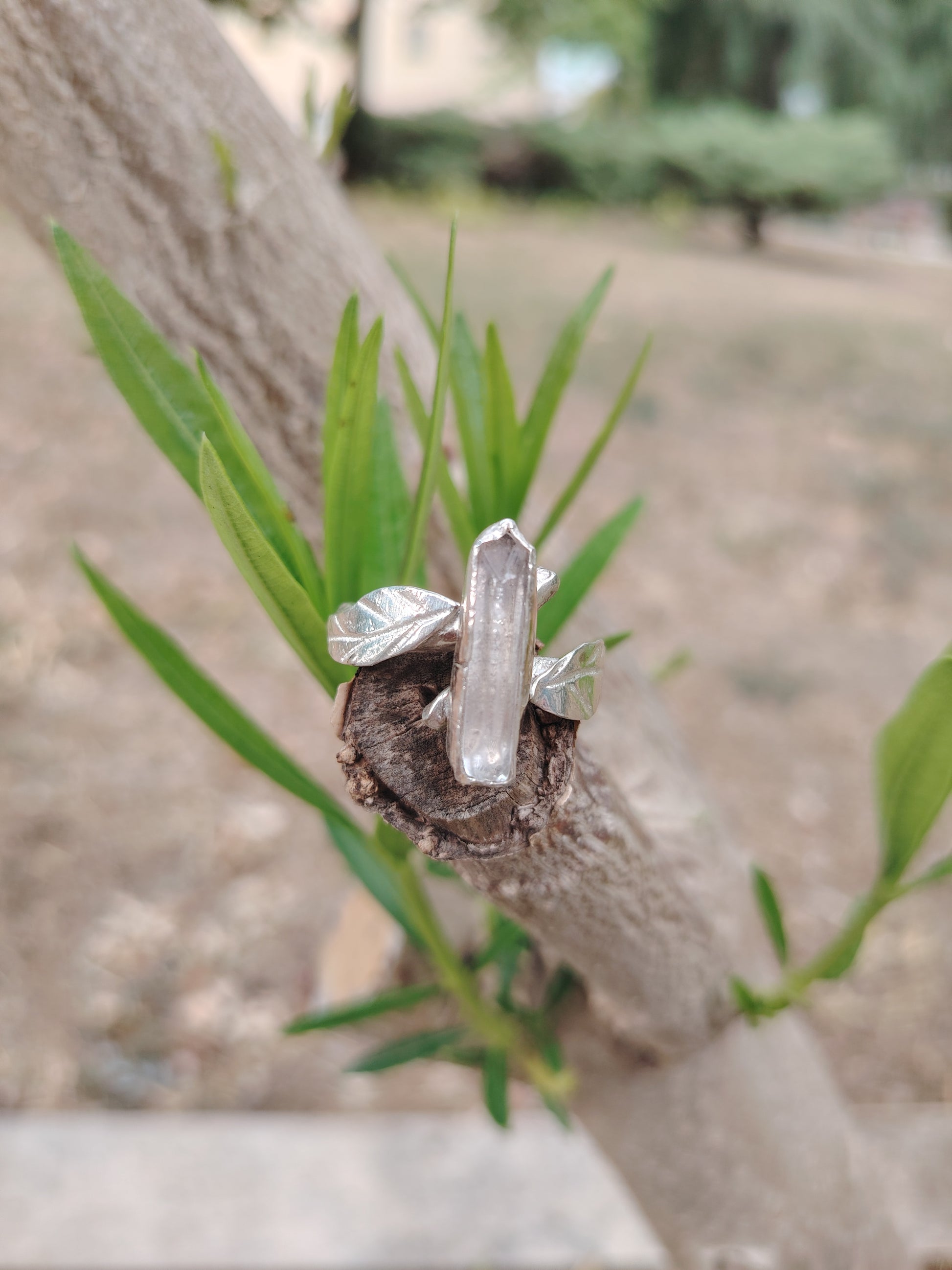 Anello in argento 925 regolabile, con quarzo ialino incastonato, realizzato a mano. Ispirato allo stile elfico e dedicato al celebre personaggio de ''il signore degli anelli'' Legolas, elfo guerriero.