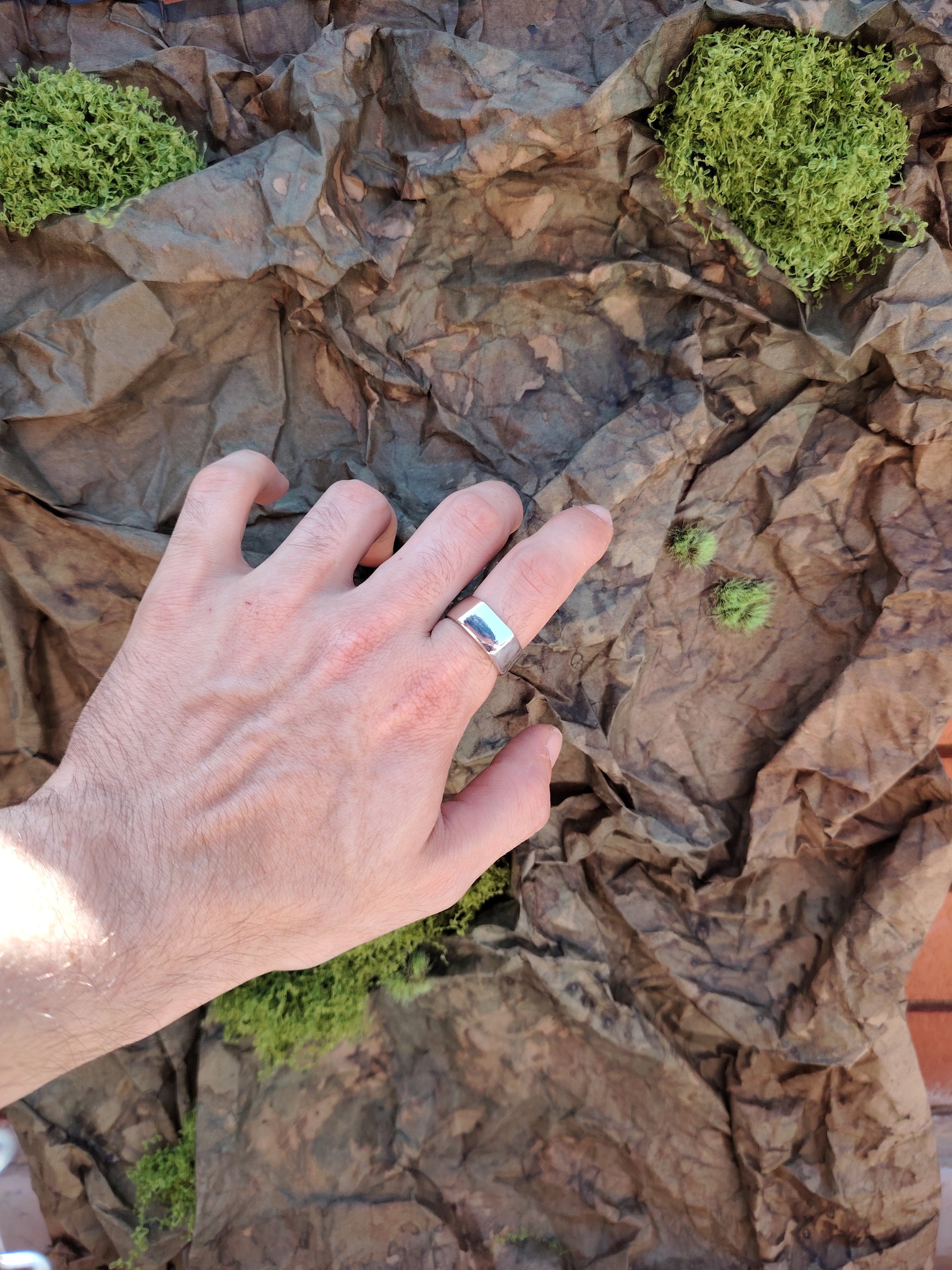 Anello in argento 925 realizzato a mano. Rivisitazione del classico Chevalier in chiave Art Nouveau, giocando con dimensioni, prospettive e proporzioni.