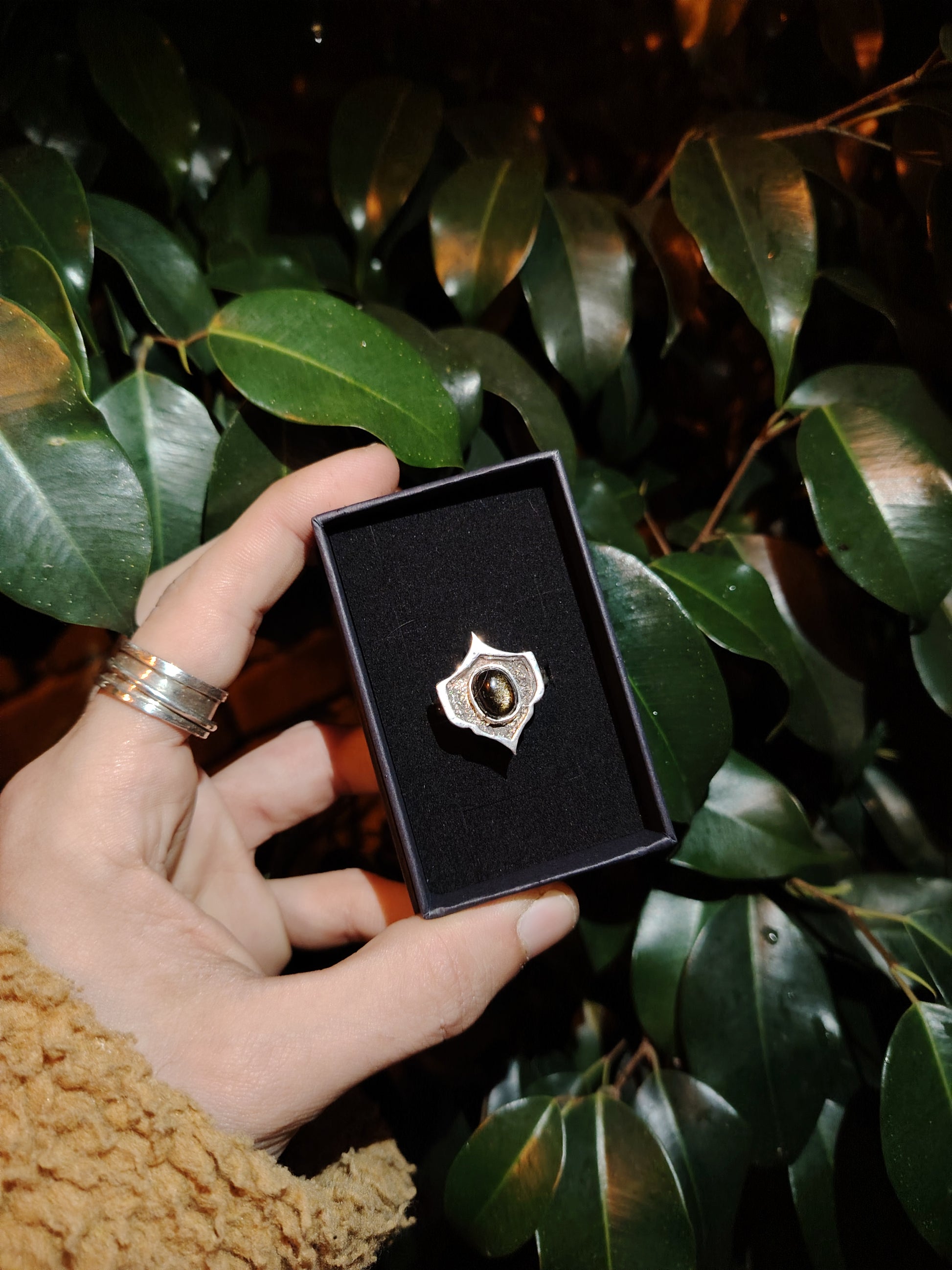 Anello in argento 925 con ossidiana dorata realizzato a mano