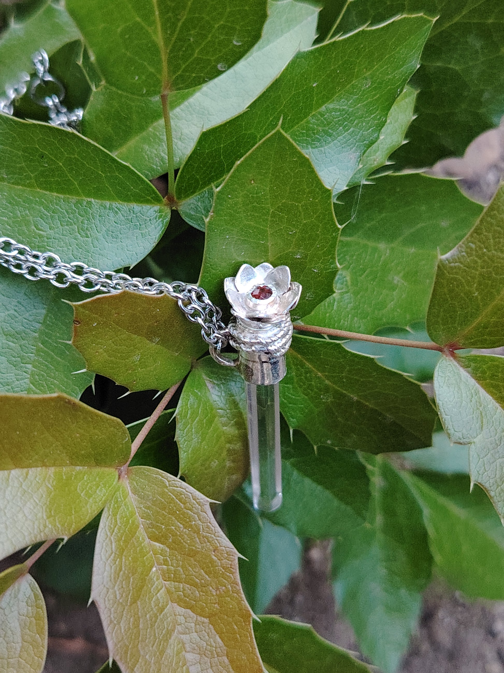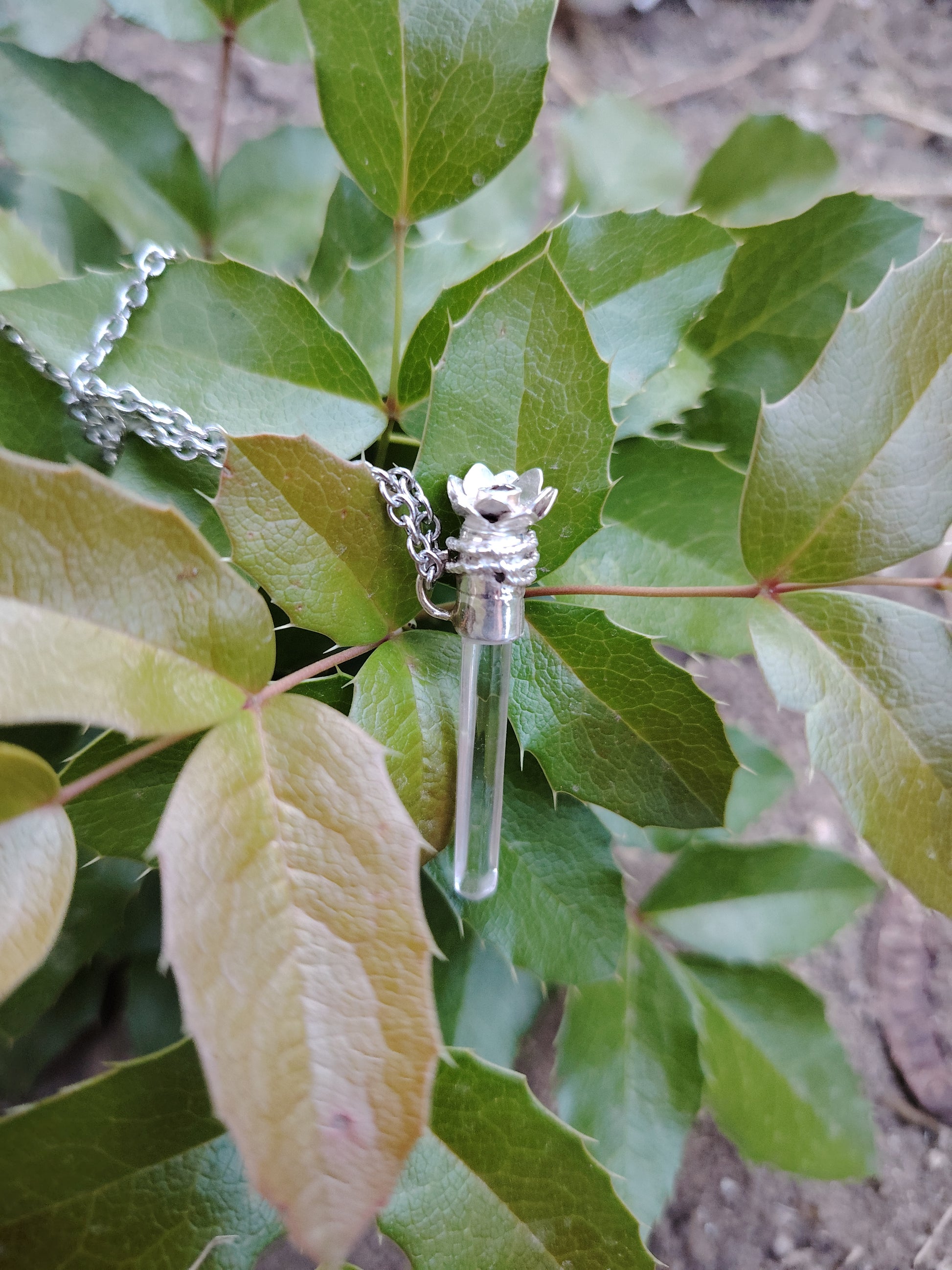 Collana in argento 925 con quarzo ialino (cristallo di rocca) incastonato, realizzata a mano ispirata alla bellezza dell'elfa Arwen fiore all'occhiello e figlia del Re degli elfi