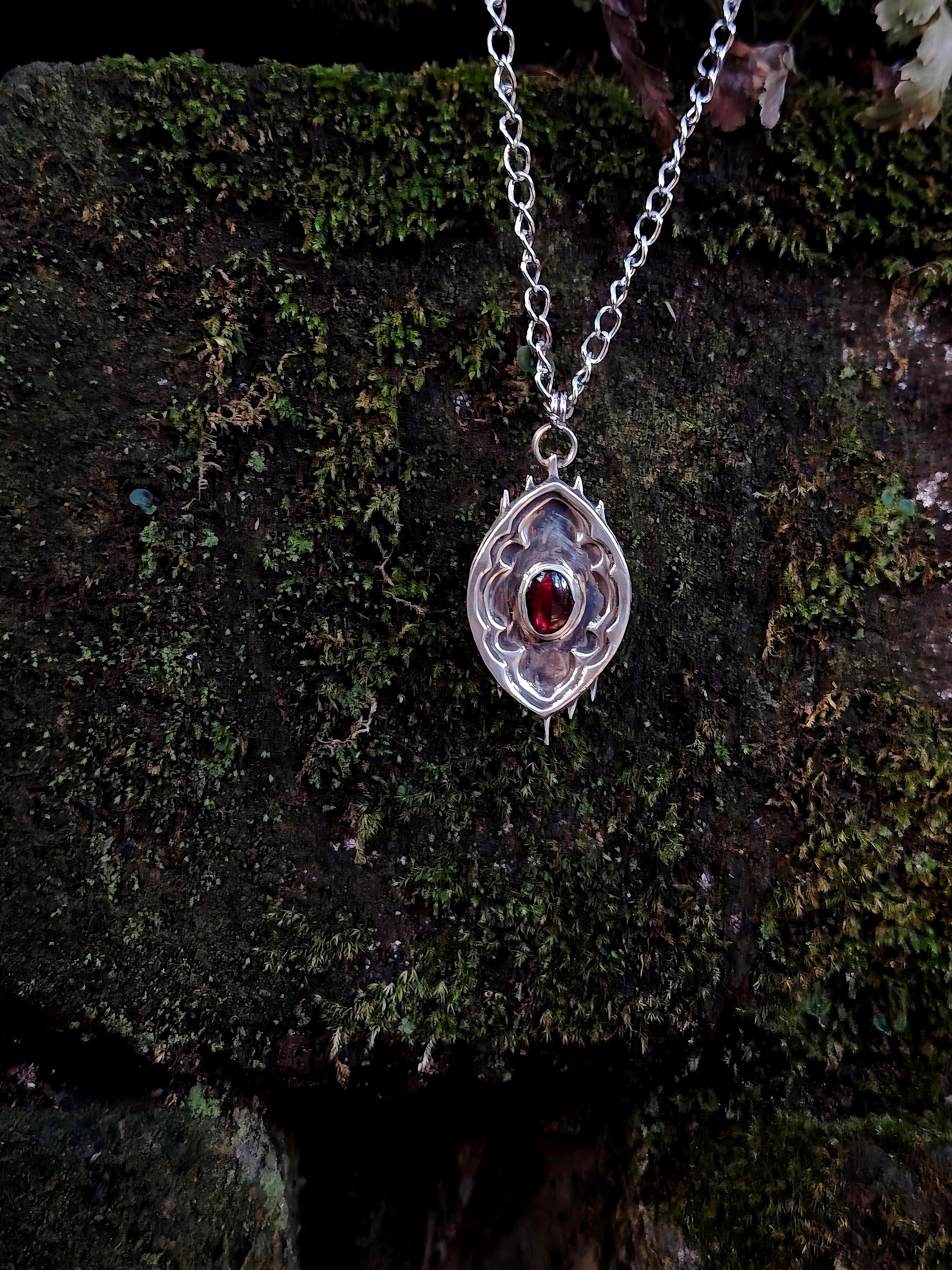Collana in argento 925 con granato rosso, realizzata a mano. Ispirata alla omonima canzone di Lana Del Rey, che cattura un'atmosfera malinconica in cui la narratrice si ''tinge'' di nero nel tentativo di far sentire meglio il suo amato dalla vista perennemente negativa, dedicandogli dolci parole rincuoranti.