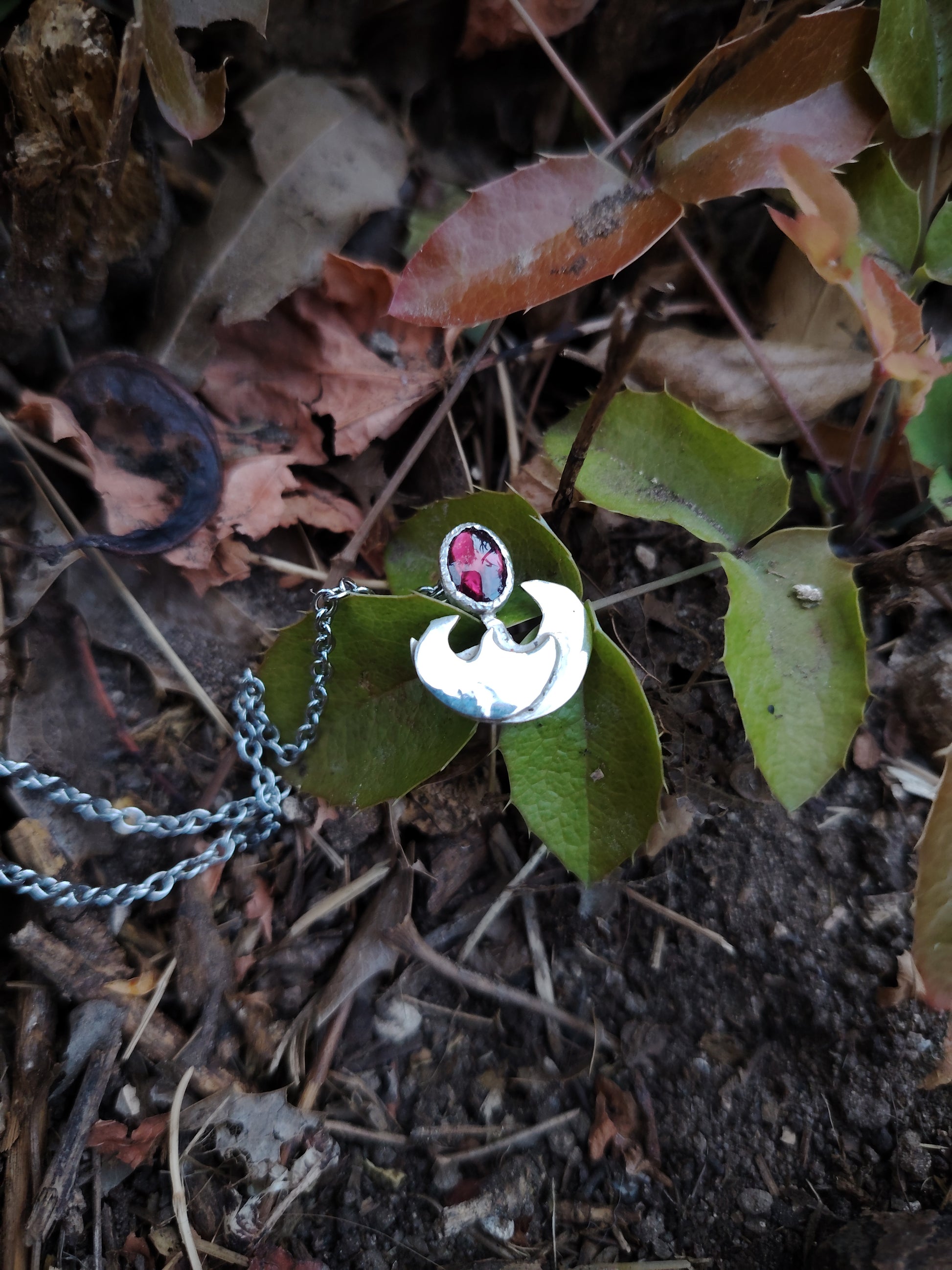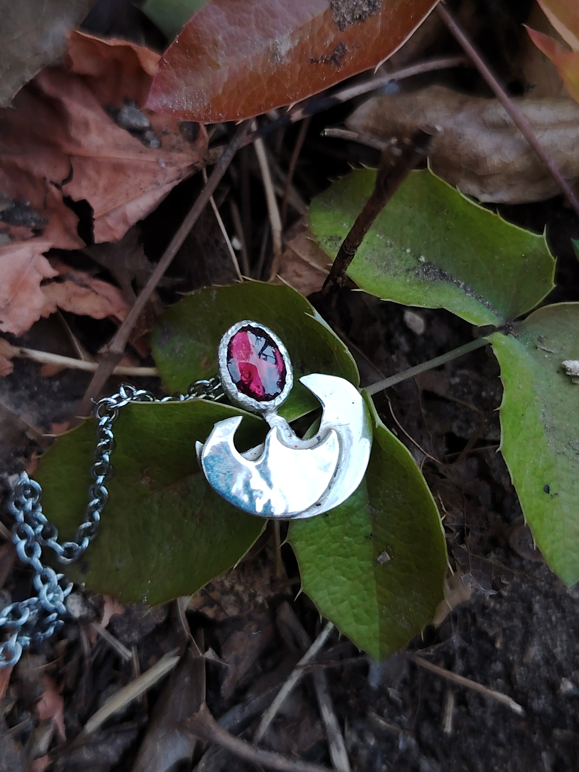 Collana in argento 925 con granato rosso realizzata a mano, ispirata alla Dea Brigid ed il suo dominio del fuoco nella cultura celtica.