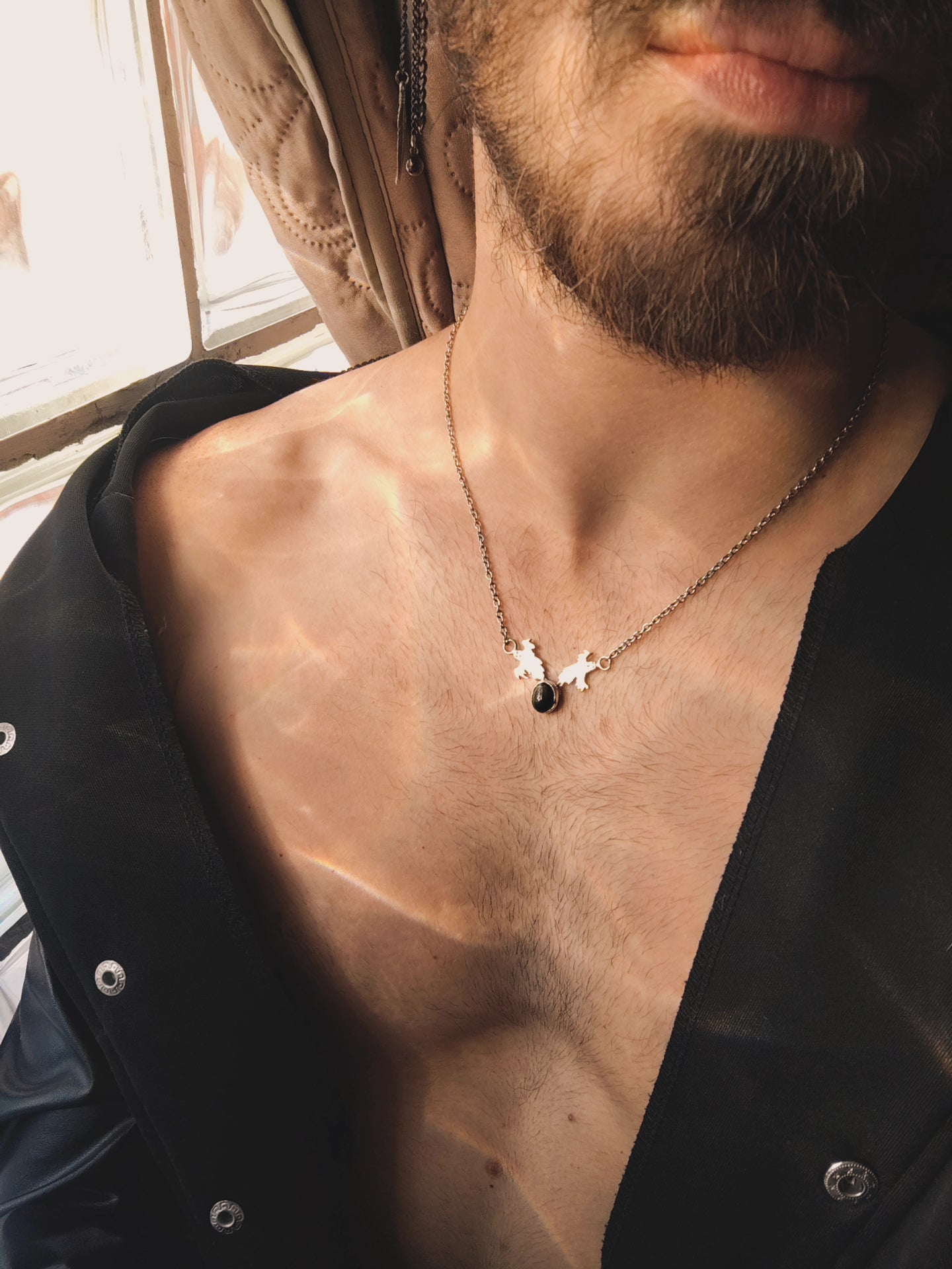 Collana in argento 925 con ossidiana dorata incastonata, realizzata a mano e ispirata al celebre film di Tim Burton ''Nightmare before christmas''