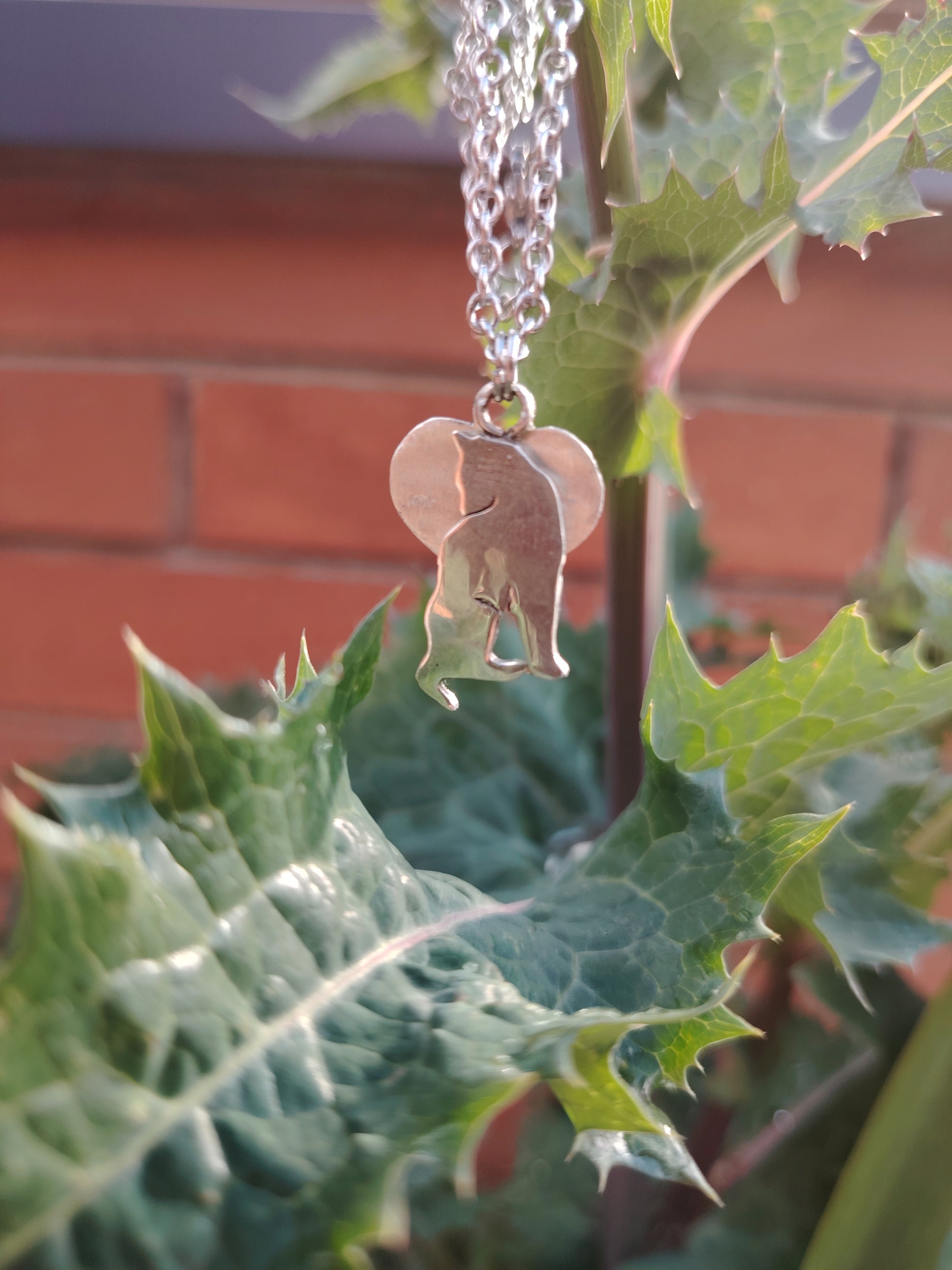 Collana in argento 925 realizzata a mano, con doppio ciondolo (gatto+medaglietta a forma di cuore con iniziale incisa). Perfetta come idea regalo per tutti gli amanti e proprietari di gatti.