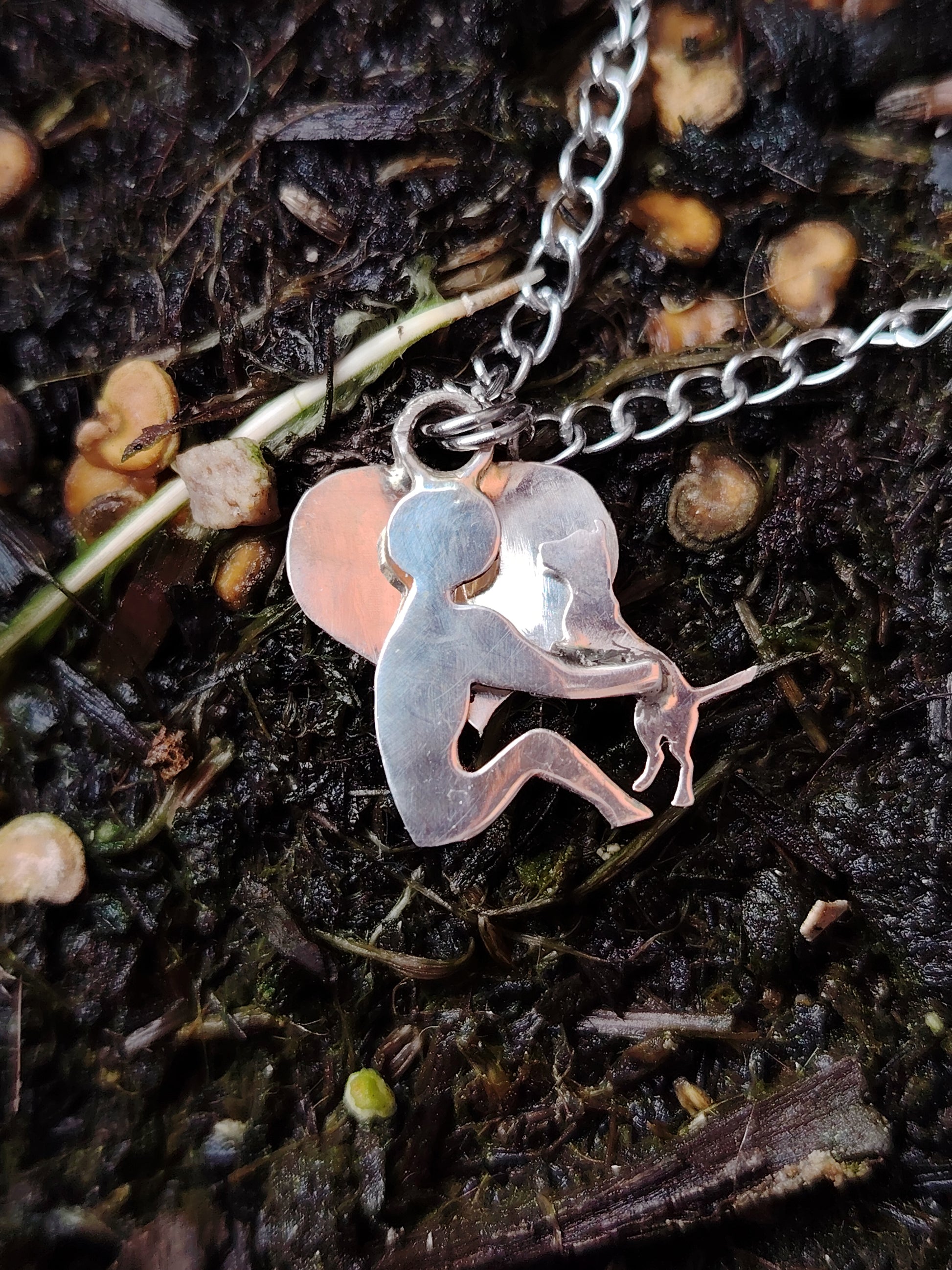 Collana in argento 925 riciclato, realizzata a mano, rappresenta l'amore incondizionato fra umano e il suo animale.