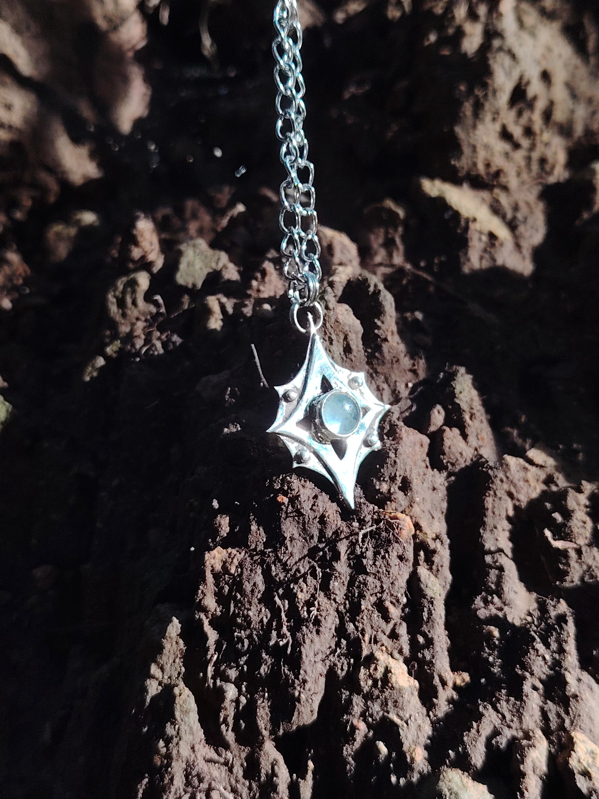 Collana in argento 925 realizzata a mano, con acquamarina incastonata.