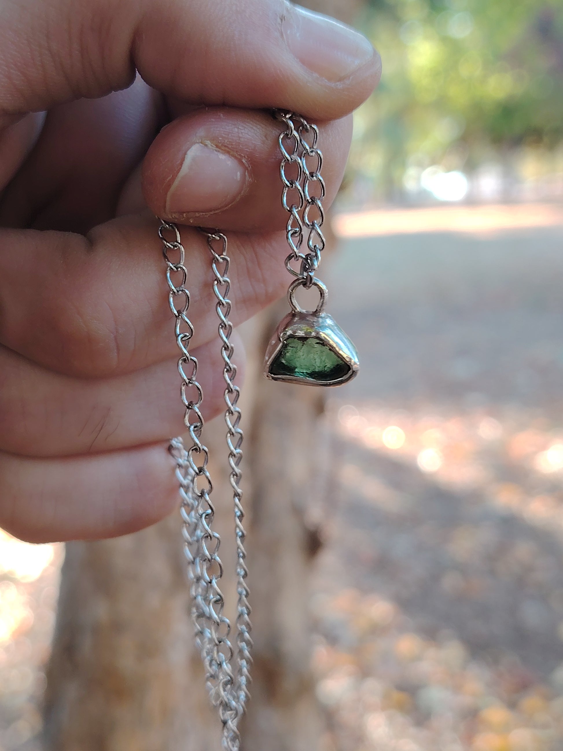Collana in argento 925 riciclato con ''vetro di mare'' incastonato a mano, parte di una collezione di gioielli realizzata con materiali di scarto in collaborazione con WWF E FAI (fondo ambiente italiano)