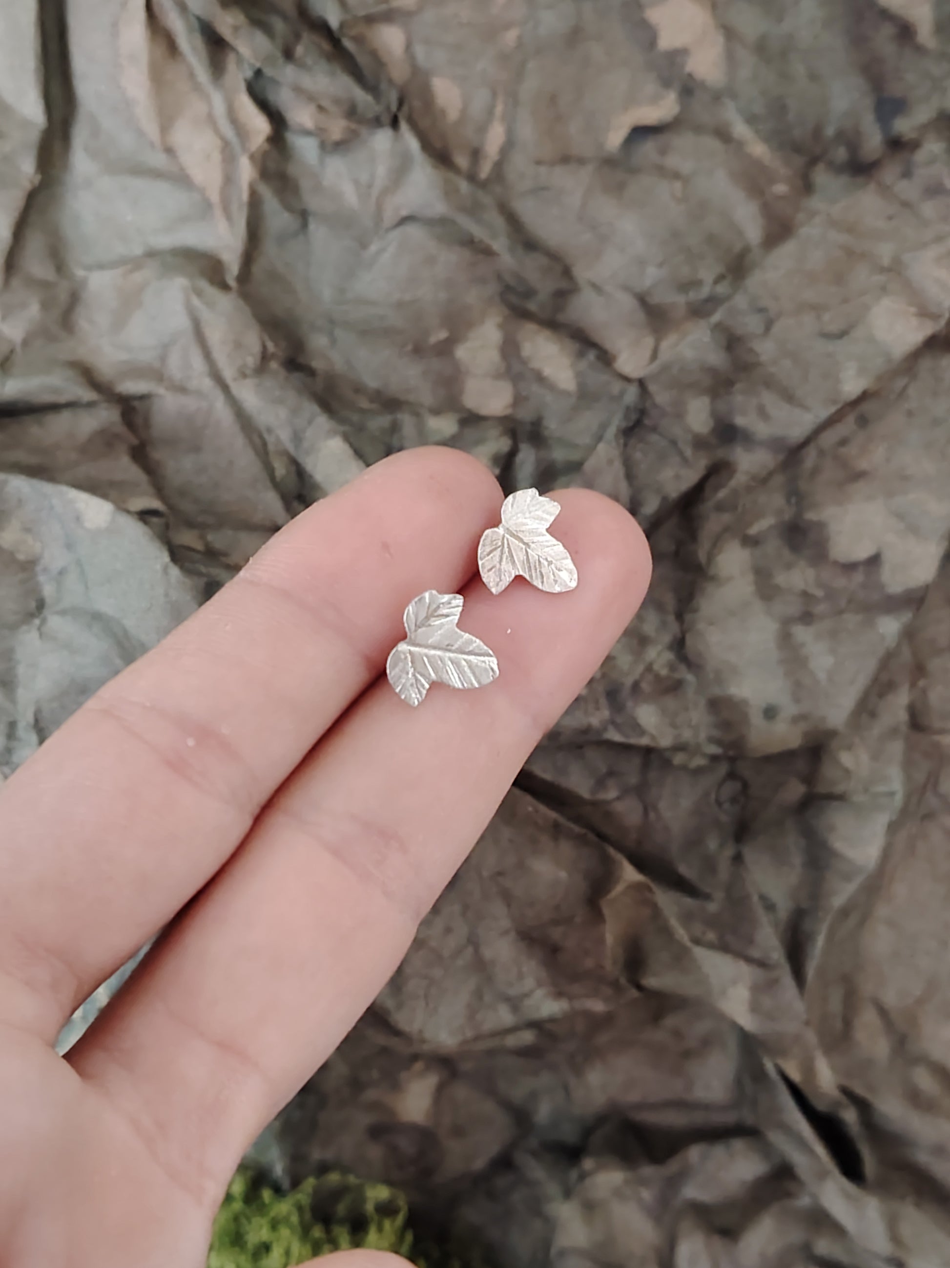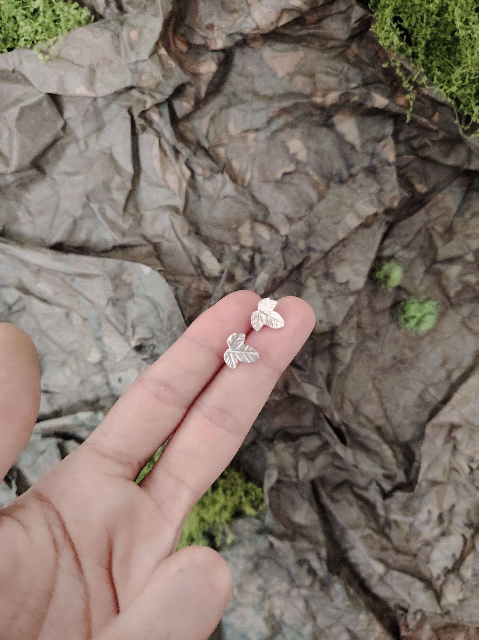 Orecchini in argento 925 realizzati a mano, abbinati all'omonima collana, rappresentanti foglie di edera, erba usata come simbolo di protezione in antiche culture.